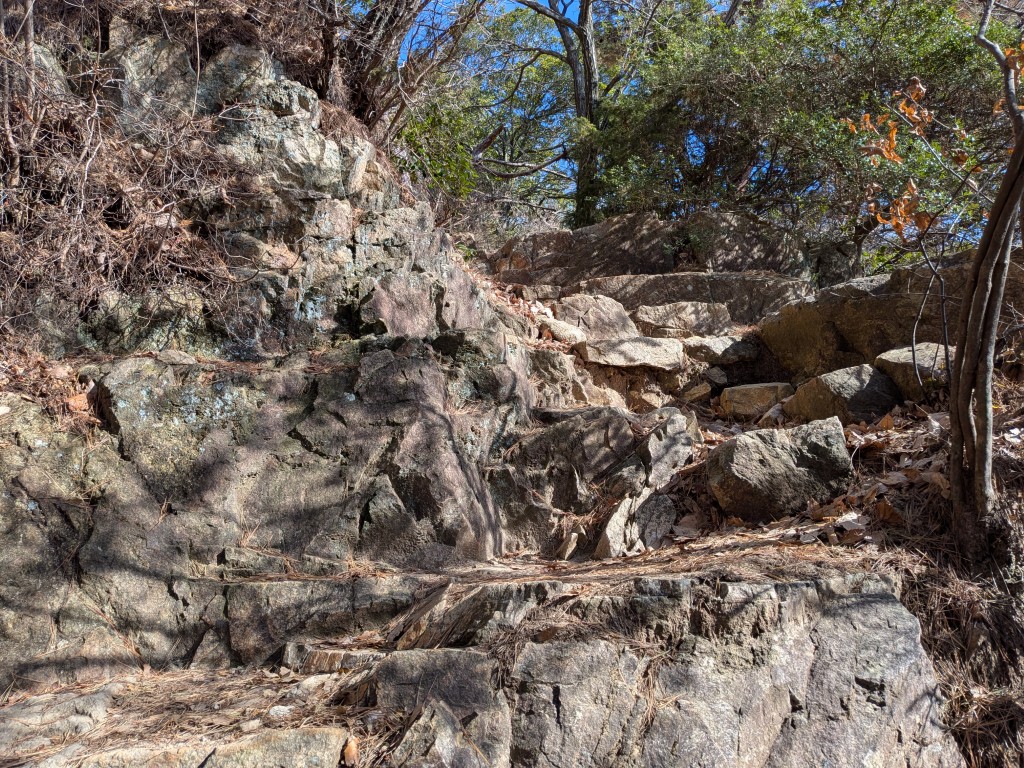 標高400mを越えた。登山開始から約2時間。息が上がり始めるが、まだまだ体力は残っている。水分補給をしながら、マイペースで登る。